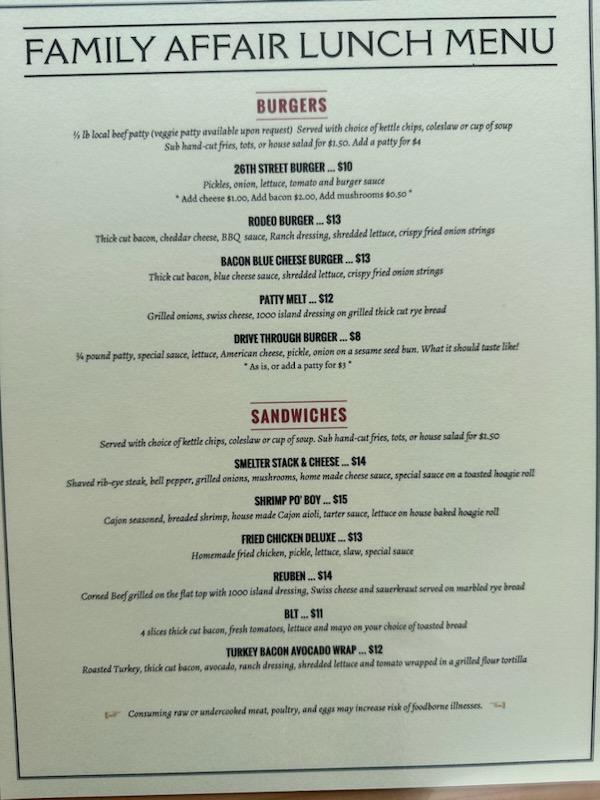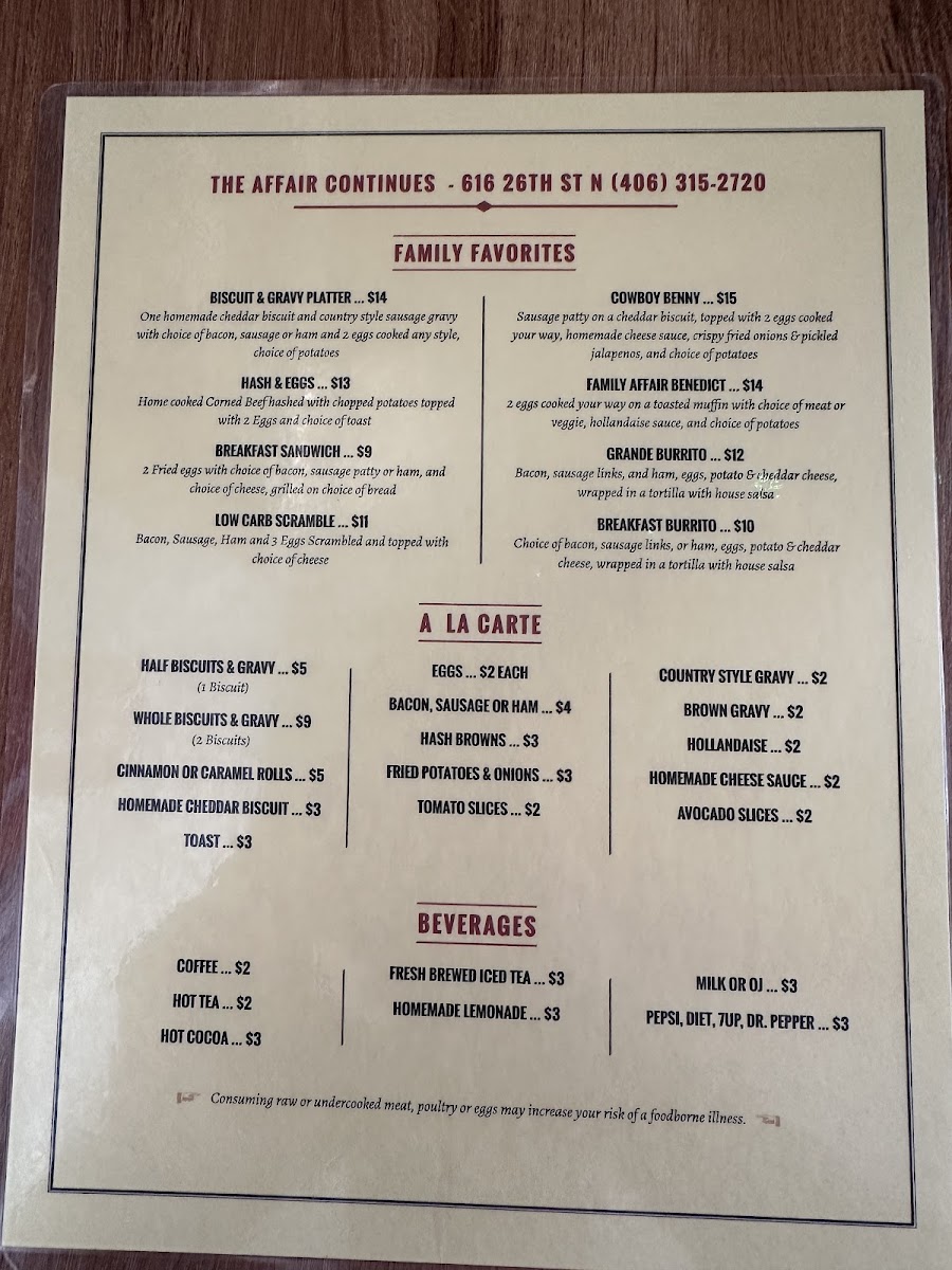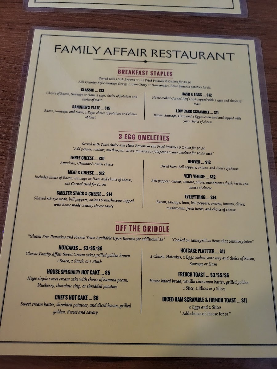 Family Affair Restaurant Menu
